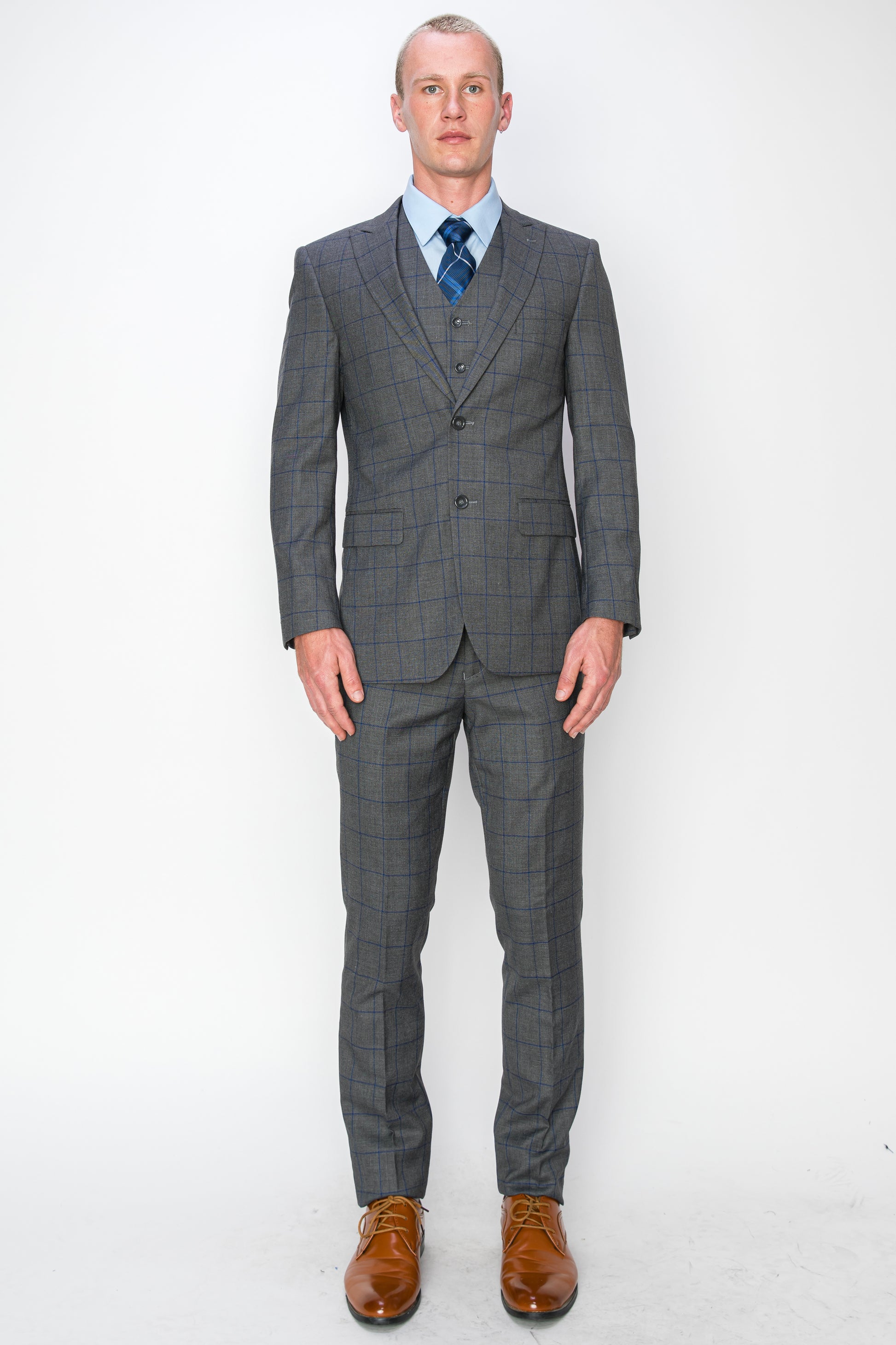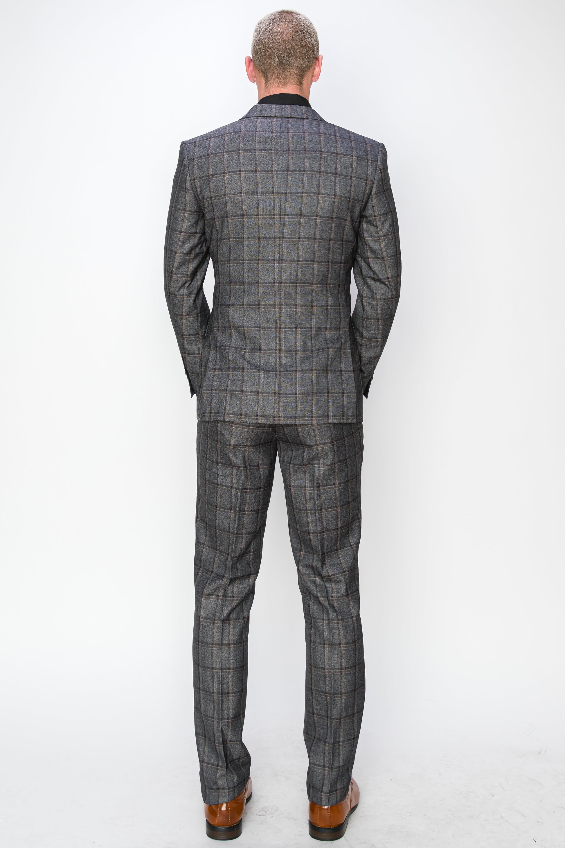 3 Piece Plaid Suit - Charcoal (072705)
