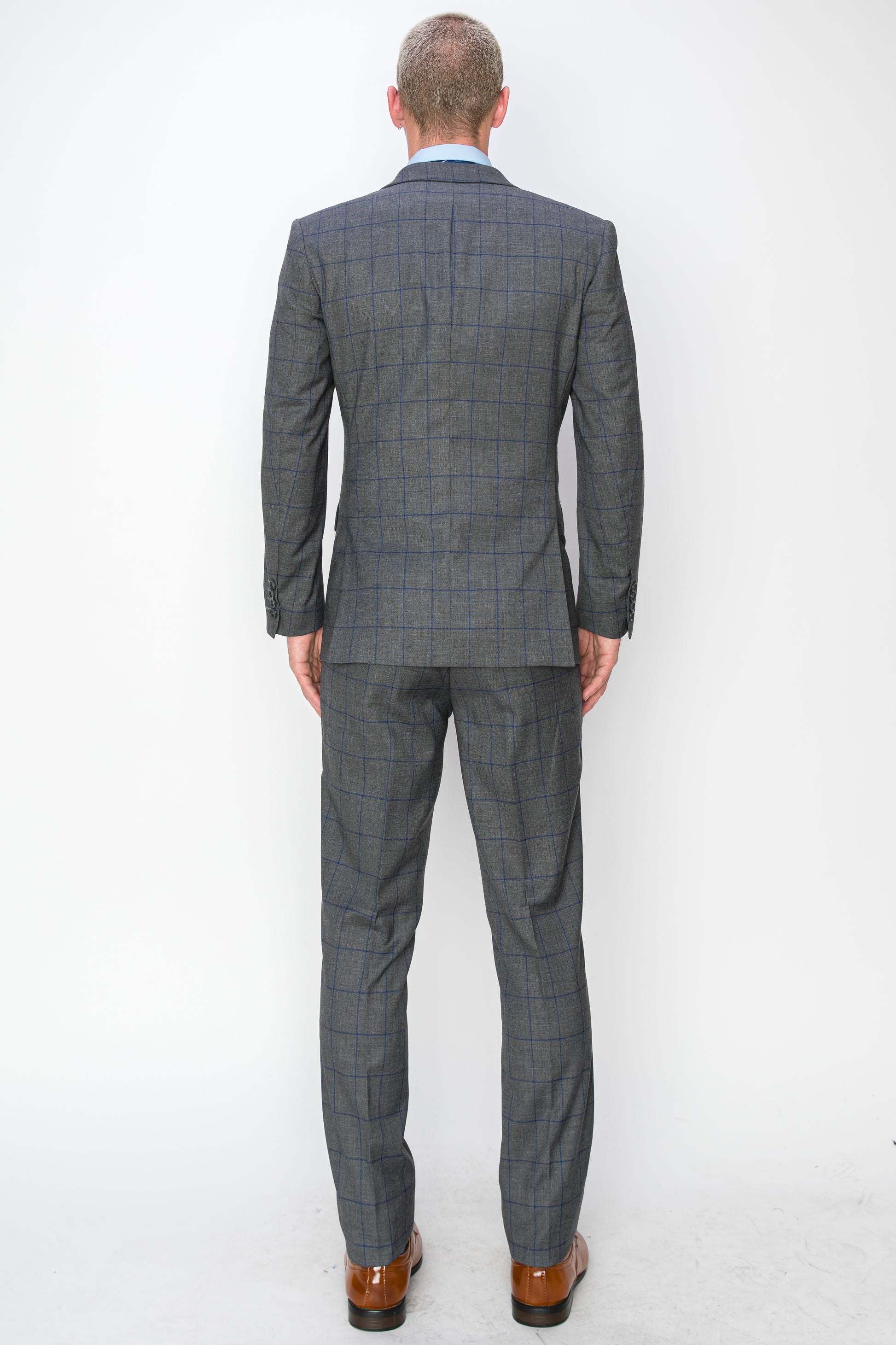3 Piece Plaid Suit - Charcoal (870505)