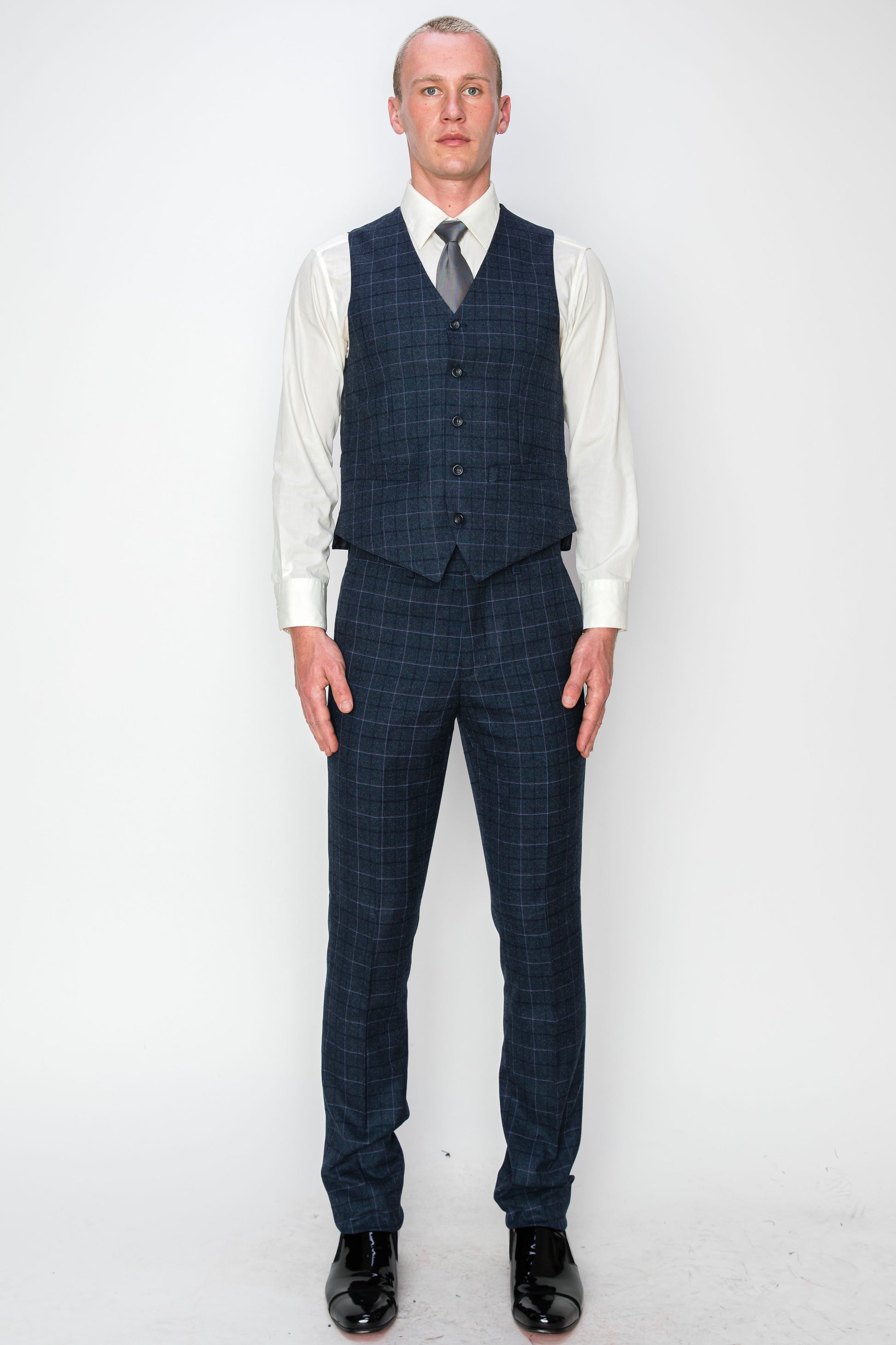 3 Piece Plaid Suit - Indigo Blue (150205)