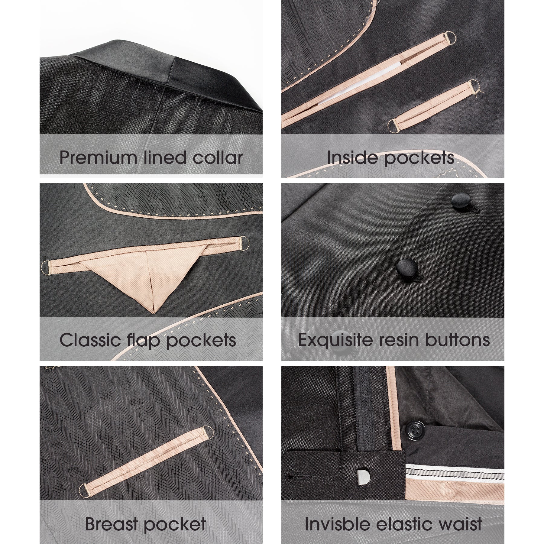 At the core of this 3-piece ensemble lies the vest – an essential element that adds depth and character to your look. Constructed from the same luxurious fabric as the jacket, it offers a snug yet comfortable fit. The classic button-front design and adjustable back belt ensure a tailored fit that enhances your physique. Whether worn as an additional layer of sophistication or as a standalone piece, the vest adds an extra layer of charm to your outfit.