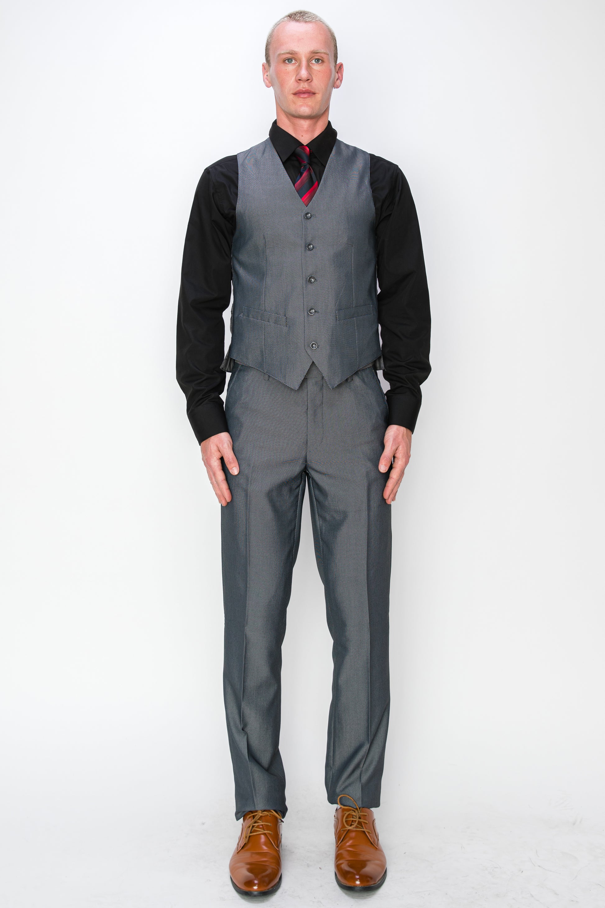 At the core of this 3-piece ensemble lies the vest – an essential element that adds depth and character to your look. Constructed from the same luxurious fabric as the jacket, it offers a snug yet comfortable fit. The classic button-front design and adjustable back belt ensure a tailored fit that enhances your physique. Whether worn as an additional layer of sophistication or as a standalone piece, the vest adds an extra layer of charm to your outfit.