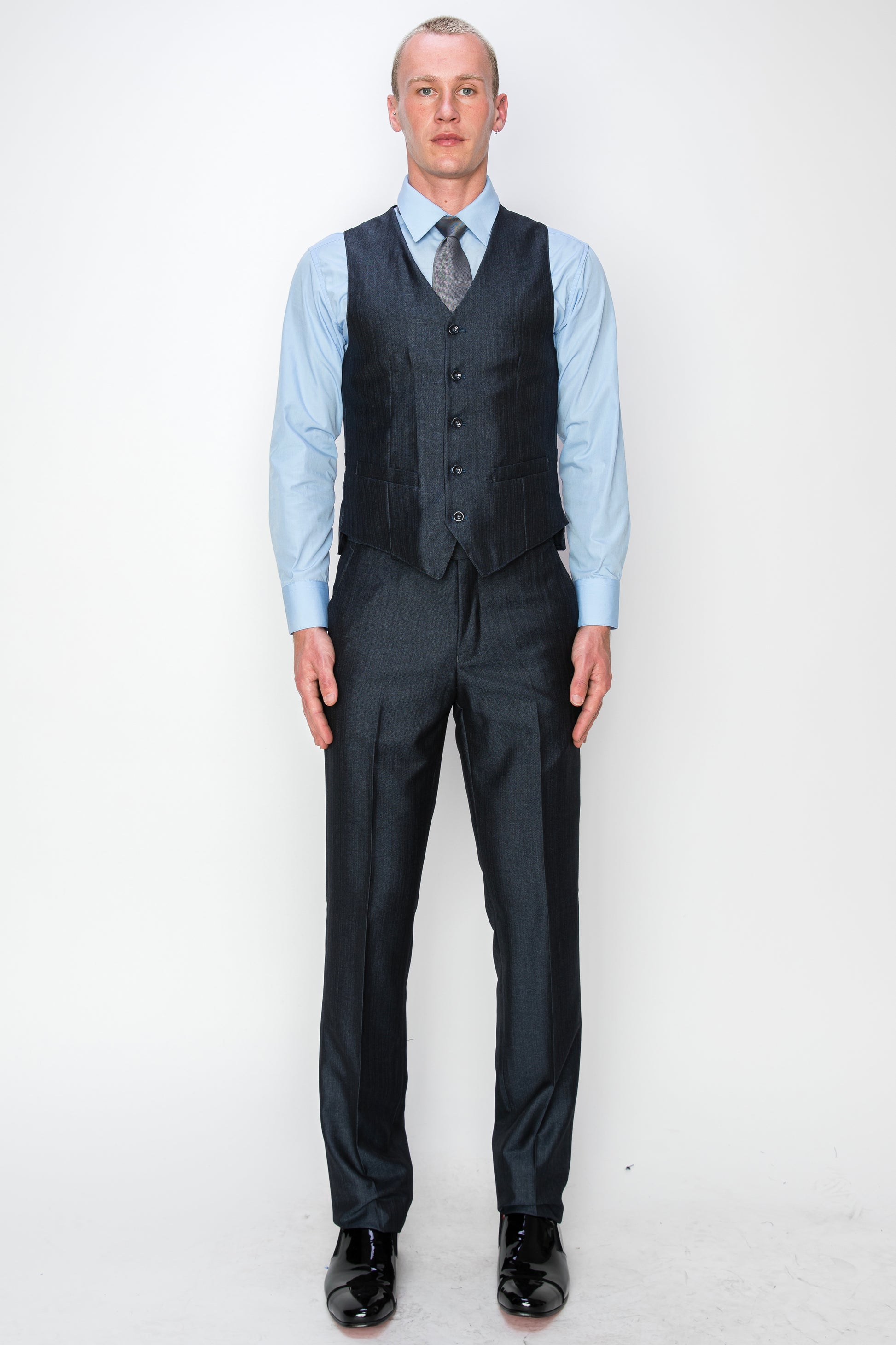 At the core of this 3-piece ensemble lies the vest – an essential element that adds depth and character to your look. Constructed from the same luxurious fabric as the jacket, it offers a snug yet comfortable fit. The classic button-front design and adjustable back belt ensure a tailored fit that enhances your physique. Whether worn as an additional layer of sophistication or as a standalone piece, the vest adds an extra layer of charm to your outfit.
