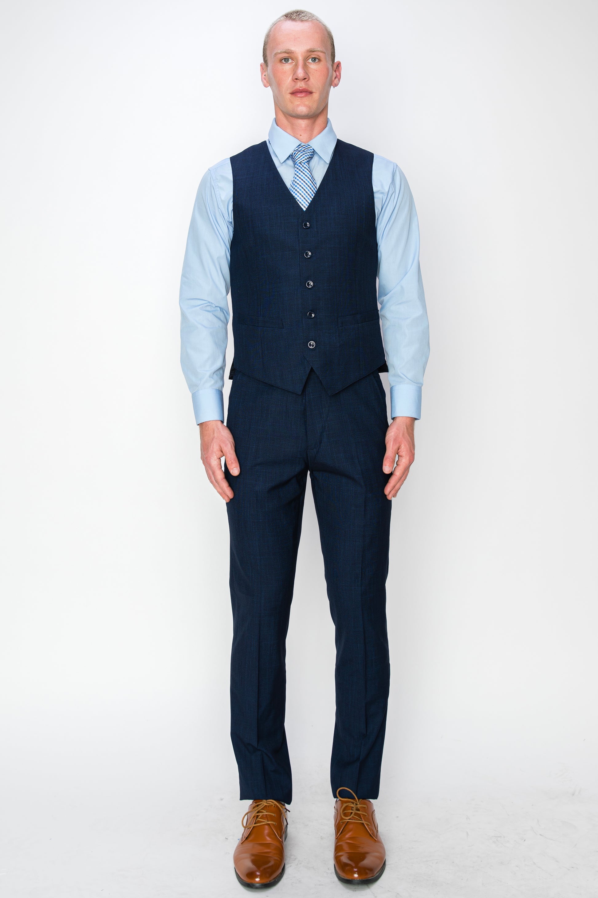 At the core of this 3-piece ensemble lies the vest – an essential element that adds depth and character to your look. Constructed from the same luxurious fabric as the jacket, it offers a snug yet comfortable fit. The classic button-front design and adjustable back belt ensure a tailored fit that enhances your physique. Whether worn as an additional layer of sophistication or as a standalone piece, the vest adds an extra layer of charm to your outfit.