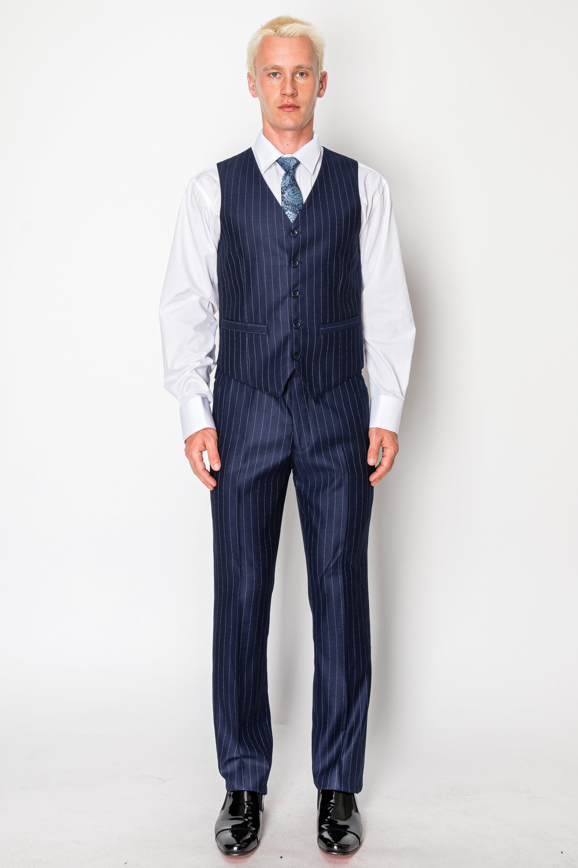At the core of this 3-piece ensemble lies the vest – an essential element that adds depth and character to your look. Constructed from the same luxurious fabric as the jacket, it offers a snug yet comfortable fit. The classic button-front design and adjustable back belt ensure a tailored fit that enhances your physique. Whether worn as an additional layer of sophistication or as a standalone piece, the vest adds an extra layer of charm to your outfit.